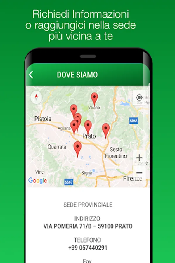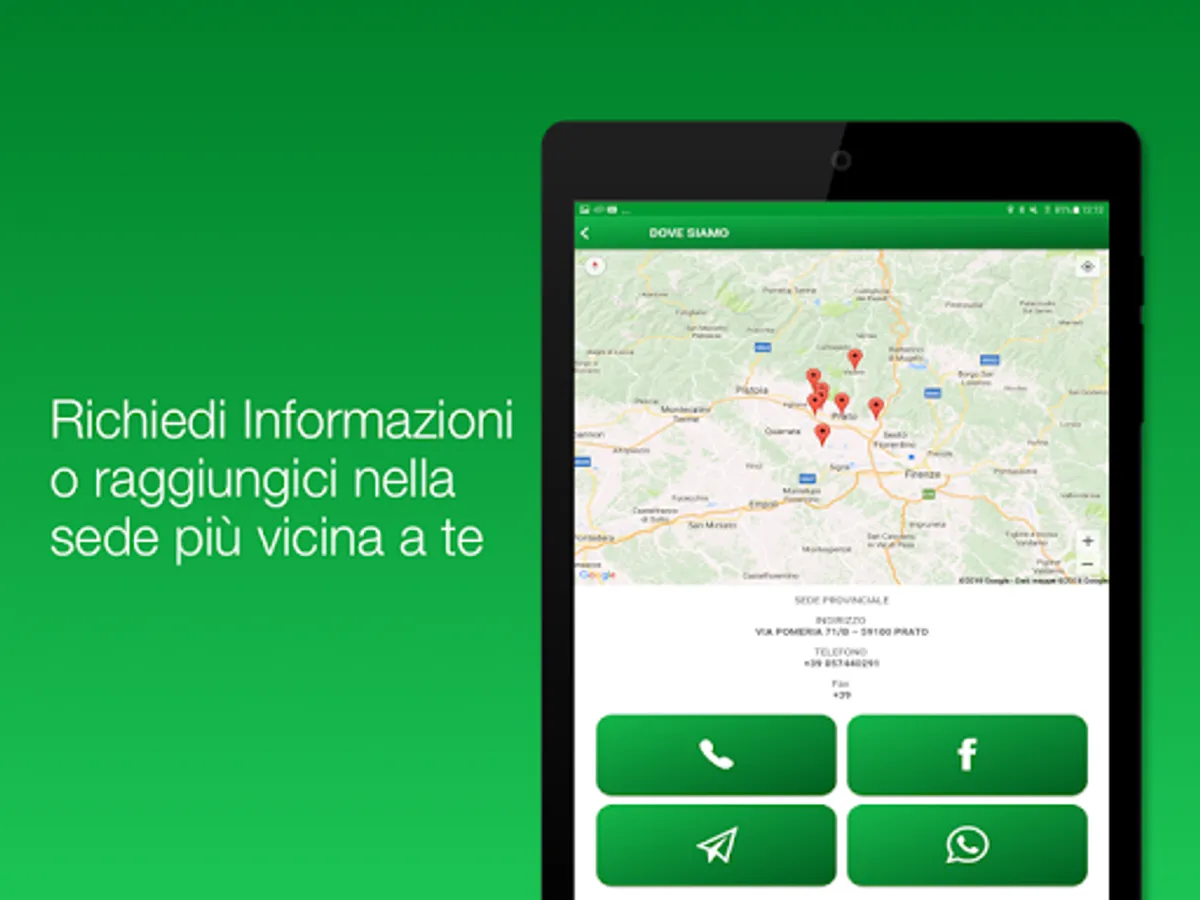 The new App Confesercenti Prato will allow you to be up to date News & Events of all Confesercenti. By creating your user profile you give you access to all areas devoted to the CAF Patronage and Insurance, with the ability to attach documents and photos. In addition, you can easily request information and consult all the new agreements directly in the App. Through the geolocation system you can easily locate the headquarters of Confesercenti nearest to you and through contacts available to make: direct calls, send email, WhatsApp messages or connect to Facebook page reference.