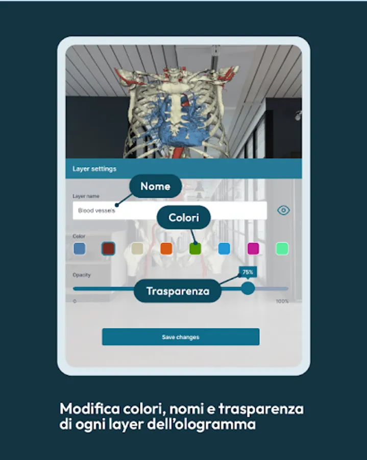 - Layers visualization: enable and disable the visualization of the layers, that is of the anatomical tissues that make up a model;