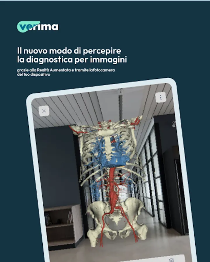 Verima Viewer allows holographic augmented reality visualization of three-dimensional models of diagnostic scans such as Computed Tomography (CT) or Magnetic Resonance Imaging (MRI).