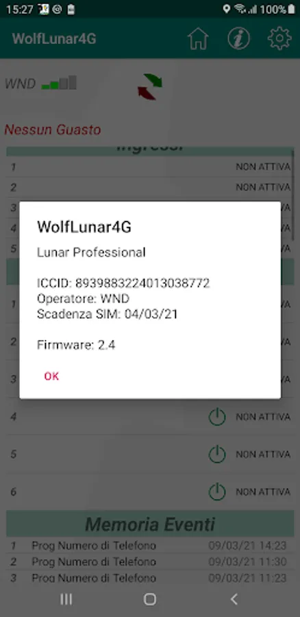 App dedicated to the management and programming of the 4G telephone dialer, WOLFSAFETY LUNAR PRO, dedicated to the surveillance of professional technical systems, with data connection and anti-jammer