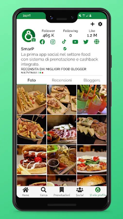 The first social app in the food sector with an integrated booking and cashback system reviewed by the best national food bloggers.