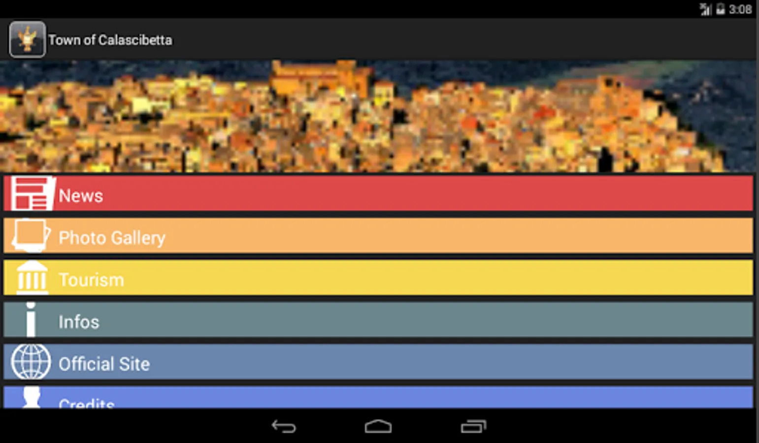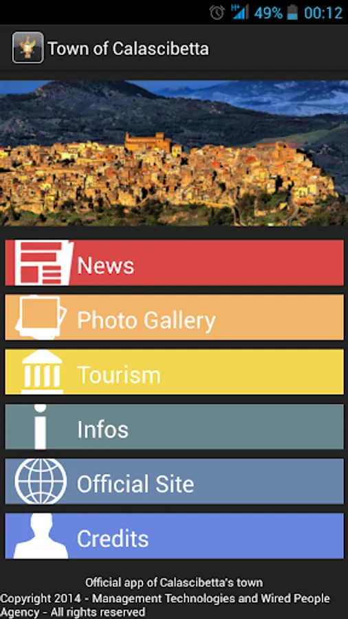 Using the app permits you to read latest news from the offical site of the Town of Calascibetta, yuo can see some of the characteristic places of the town, you can download the guides to Churches, Places and Archeological Sites of the town and obtain some other generic and statistics informations about the town of Calascibetta.