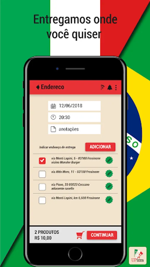 UPizza, Italian pizza delivery, is um aplicativo que natau para espalhar to Italian pizza emodo or Brasil. Tudo natau de um dos fundadores, Carlo, que, de um Italian à pasio no Brasil, procured uma pizzaria italiana para si and his família (if sabe, nós italianos comemos always Italian). Unhappily, an Italian pizzaria que ele encontrou was muito longe and não entregavam em casa os pedidos das pizzas. Naquele moment veio to ideia na his mind: "Se ninguém entrega Italian pizza em casa, então irei fazer isso." Assim nasceu UPizza, Italian pizza delivery