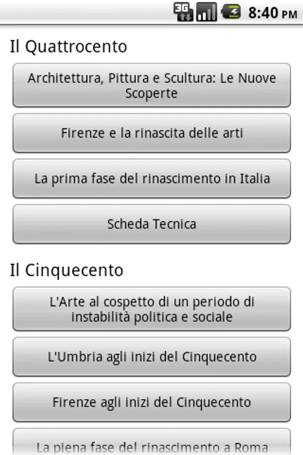 An in-depth overview of three centuries of Art History. The main authors, the major works. A manual can follow paths biographical and artistic personalities grandiose not only Italian but also European. Leonardo, Michelangelo, Raphael, Caravaggio, Tiepolo, Turner, Goya ... in the service of the various patrons at various times.