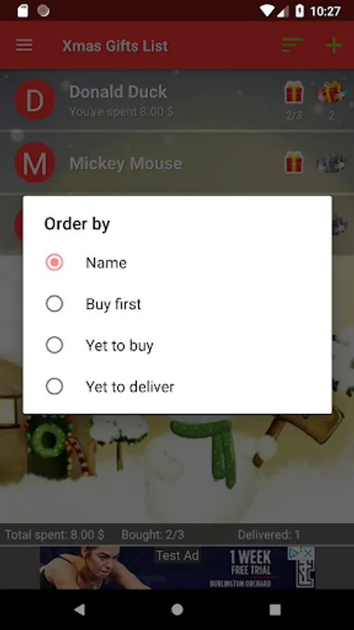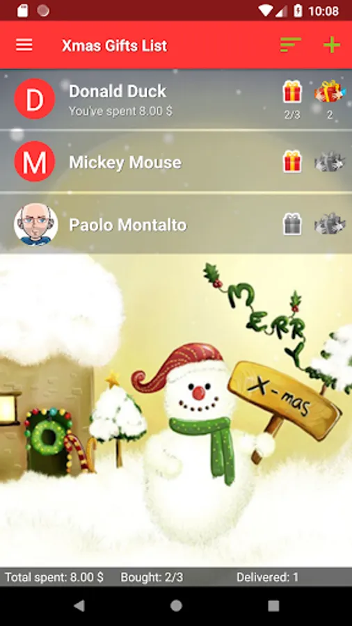 * Sort people by name, deadline (day you must have the gift bought), not yet bought