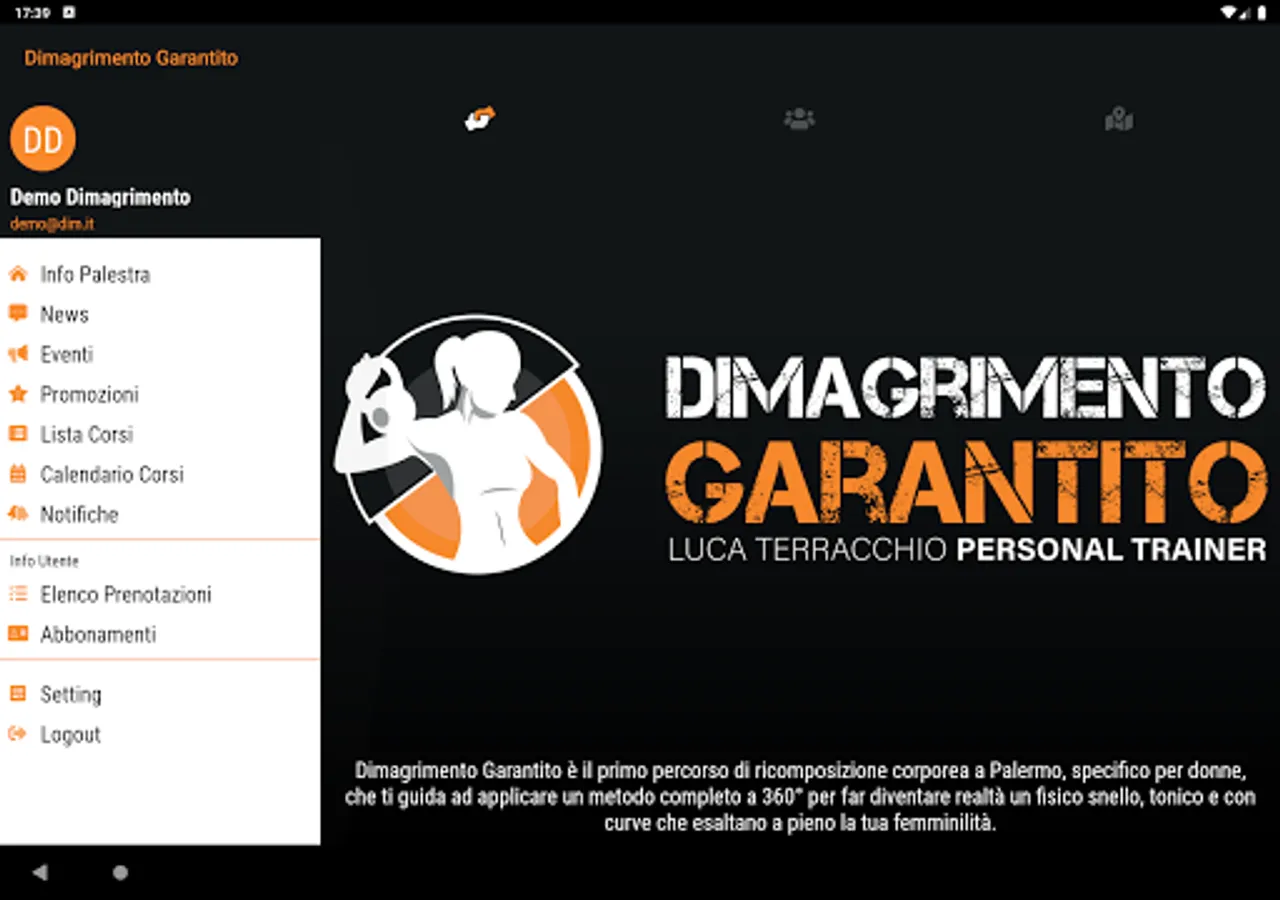 "Slimming Guaranteed" also allows you to send push notifications to communicate quickly with all members, proposing events, promotions, news or communications of various kinds. It is also possible to view the complete calendar of available courses, the instructors who make up the staff and more.