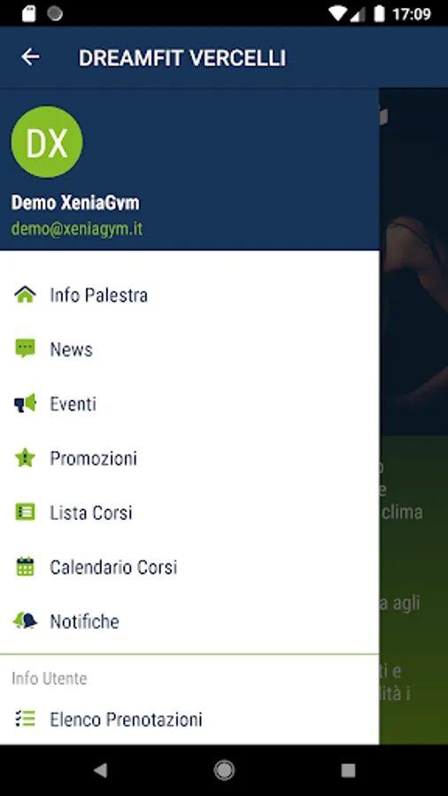 It is possible, through the "DreamFit Vercelli" app, to manage courses, lessons and season tickets made available by the sports facility in total autonomy.