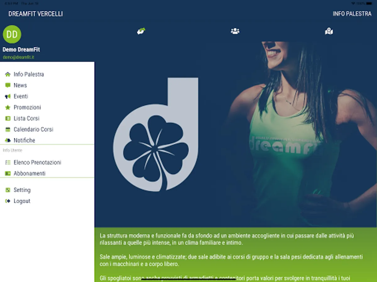 "DreamFit Vercelli" is the innovative mobile app that connects sports facilities with their associated customers.