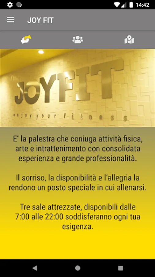 It is possible, through the "Joy Fit" app, to manage courses, lessons and season tickets made available by the sports facility in total autonomy.
