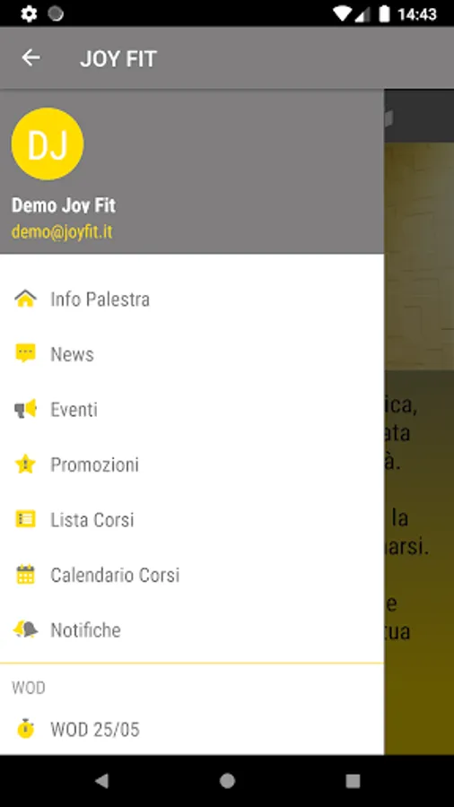 "Joy Fit" also allows you to send push notifications to communicate quickly with all members, offering events, promotions, news or communications of various kinds. It is also possible to view the complete calendar of available courses, the daily wod, the instructors that make up the staff and more.