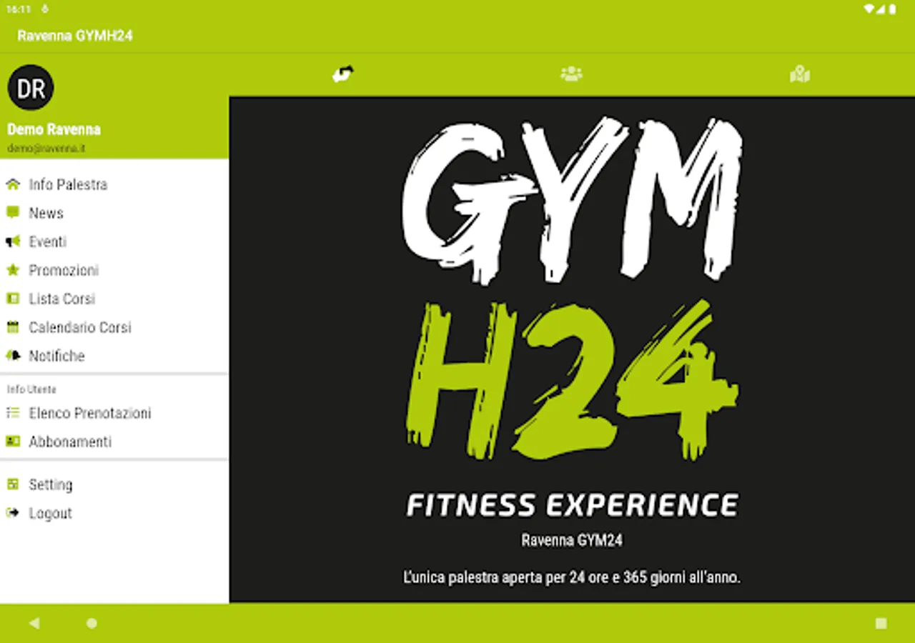 “Ravenna GYMH24” is the innovative mobile app that connects the sports facility with its associated customers.