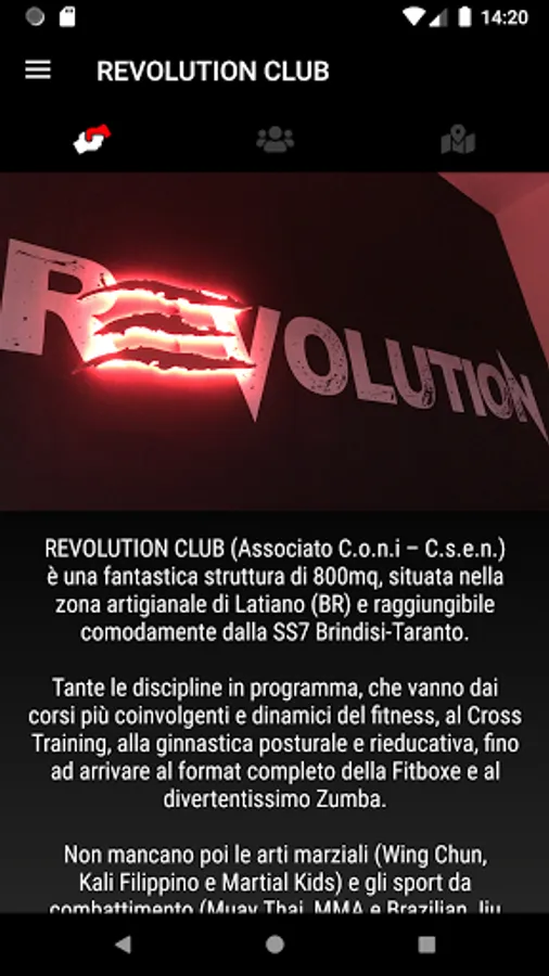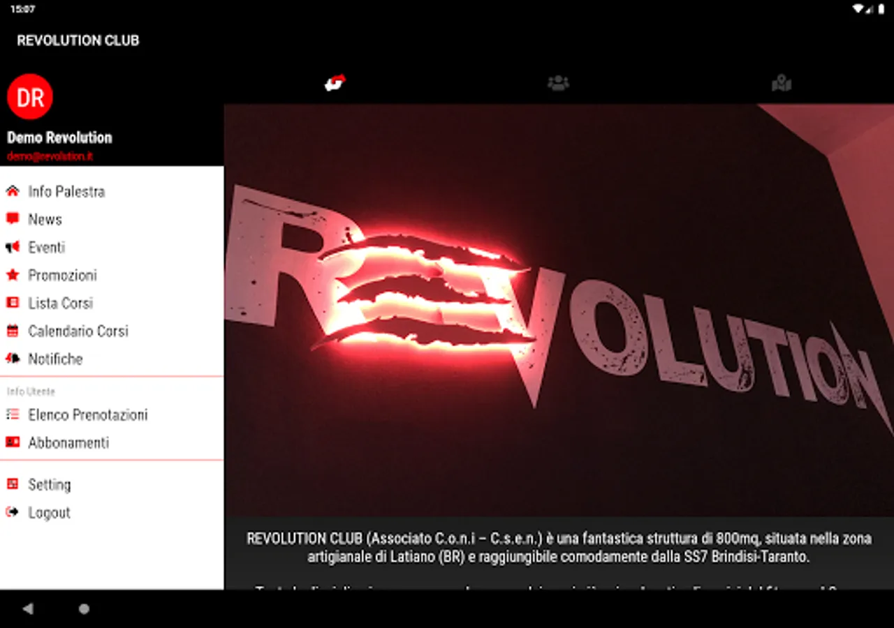 "Revolution Club" is the innovative mobile app that connects sports facilities with their associated customers.