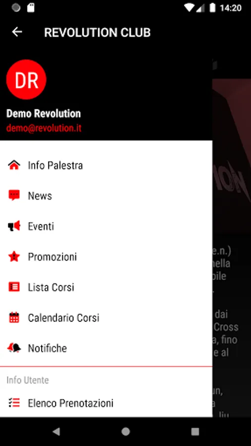 "Revolution Club" also allows you to send push notifications to communicate quickly with all members, proposing events, promotions, news or communications of various kinds. It is also possible to view the complete calendar of available courses, the daily wod, the instructors who make up the staff and more.