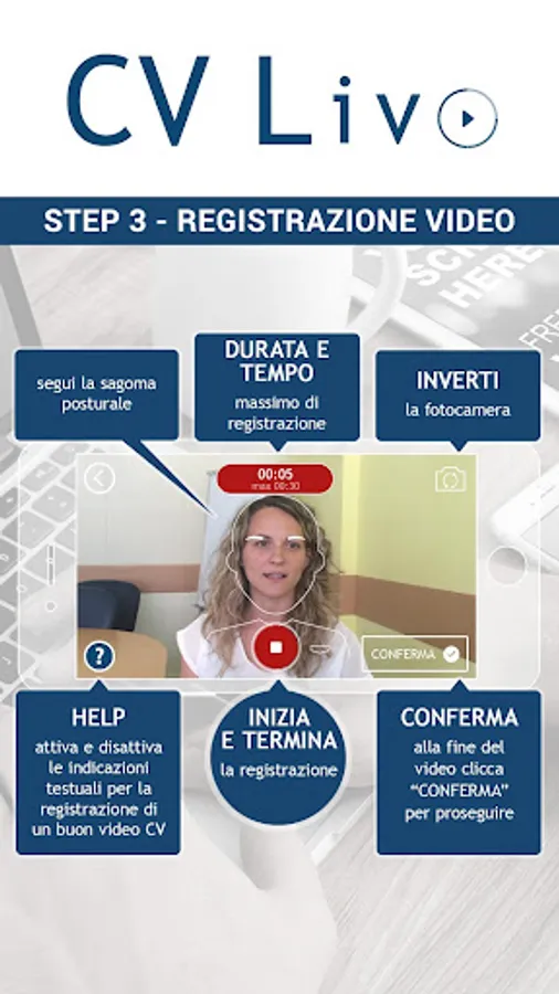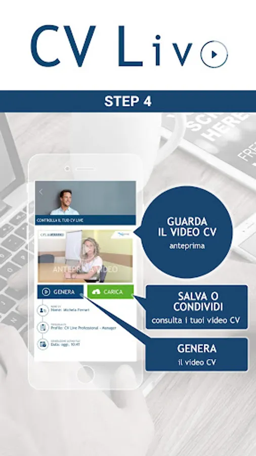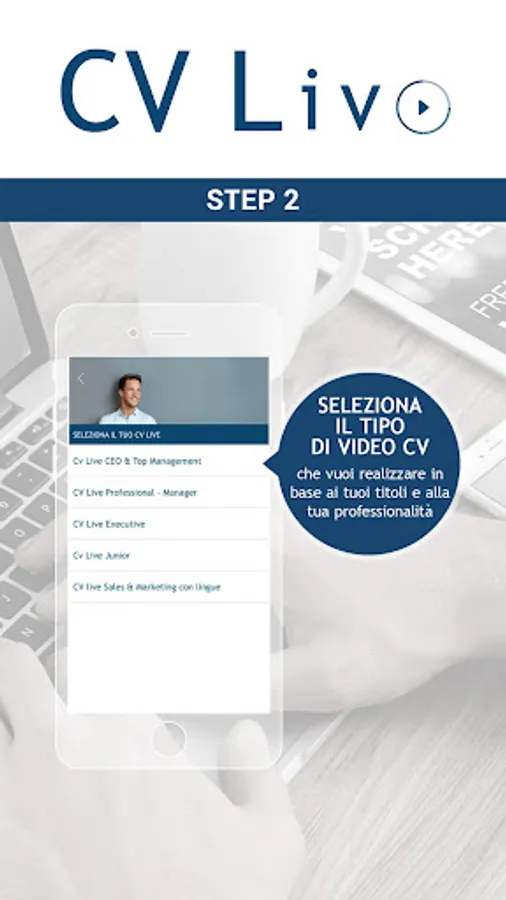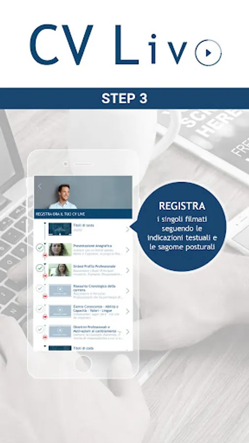 Through CV Live produce your own video presentation. By choosing the professional profile you will be guided step by step in the recording of your video presentation with the ability to edit and record the individual parts again to ensure a perfect result.