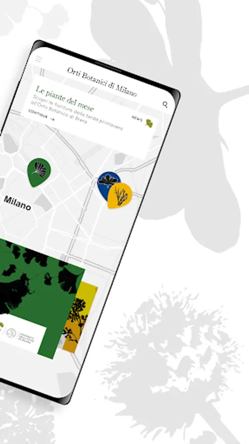 The app offers the user curiosity and news on the events and collections of the Botanical Gardens of Brera and Città Studi and the Herbarium of the University of Milan (Herbarium Universitatis Mediolanensis).