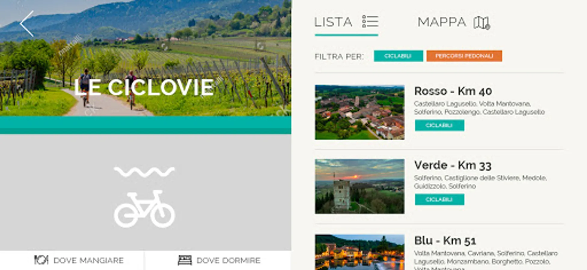 In the secondary sections of the app there is no shortage of information on the structures in the area and the typical foods of the Mantua area.
