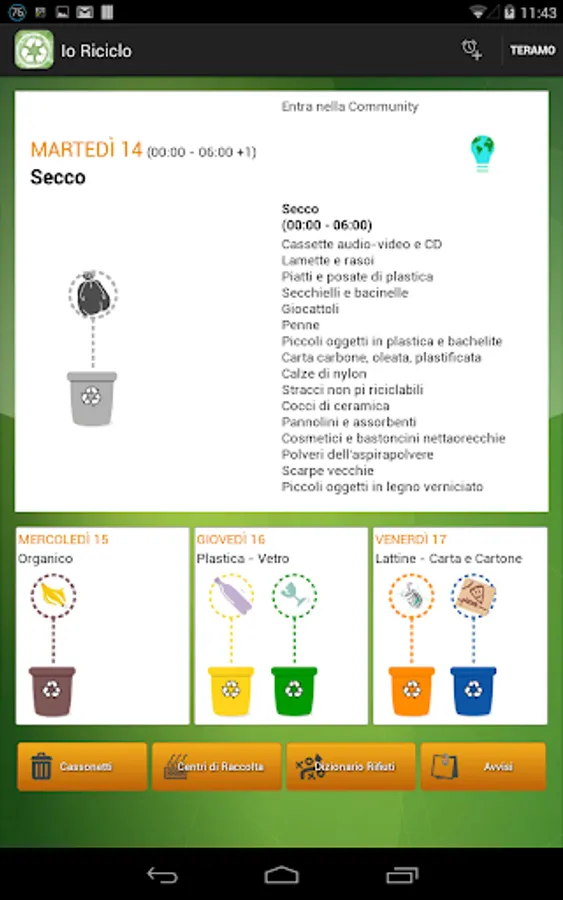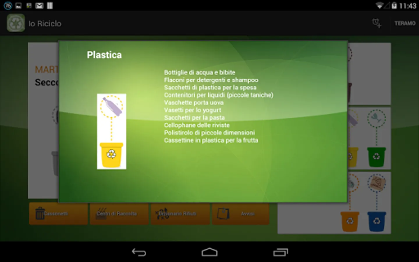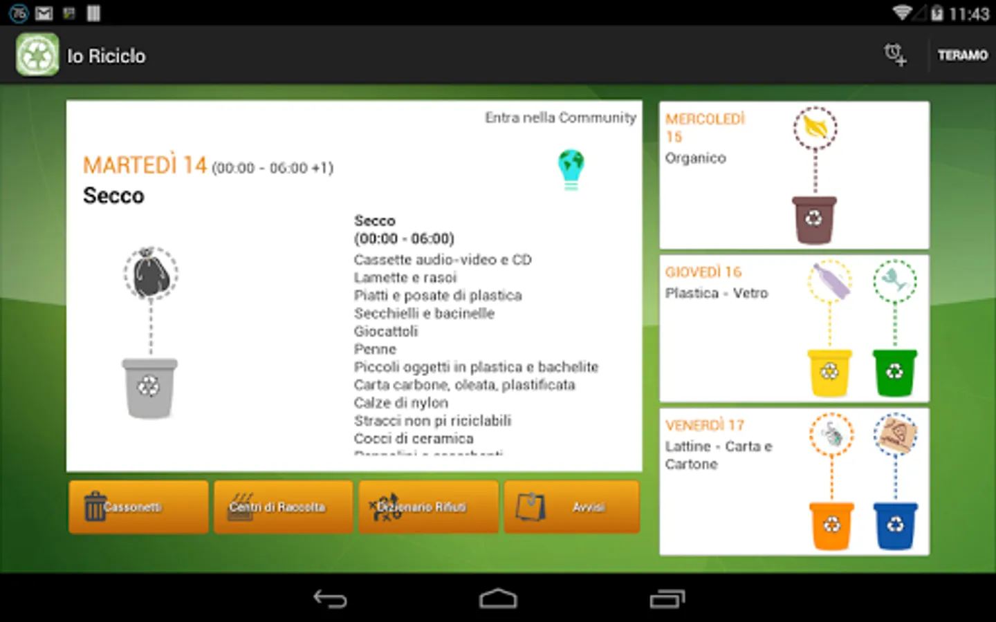 - The citizen with your smartphone download the free application and select the town and the area of interest. Daily is informed about the type of waste to be disposed of in the current day and in the days immediately following.