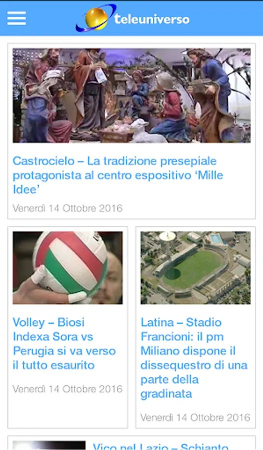 The official mobile app of Teleuniverso, the most-watched TV the Lazio Region. Download it now and get the news in real time by our staff on news, politics, sports, events and much more.