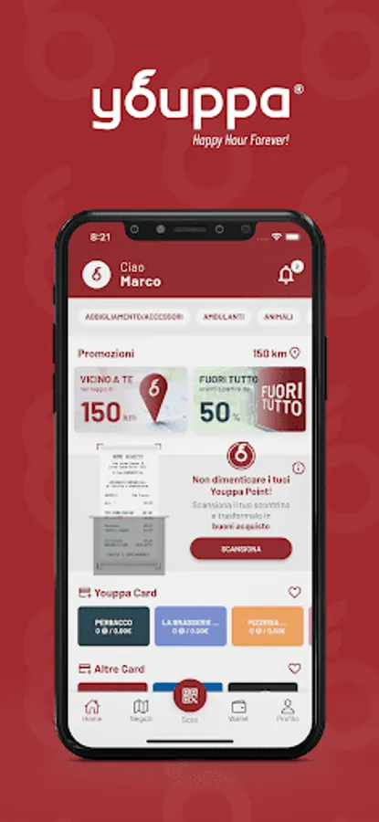Download Youppa and discover all the shops near you that adhere to the Youppa promotional circuit. You will be able to see the promotions reserved just for you of each single store. You will be able to get your Loyalty Card in order to accumulate points and receive discounts. What are you waiting for? Download the app.