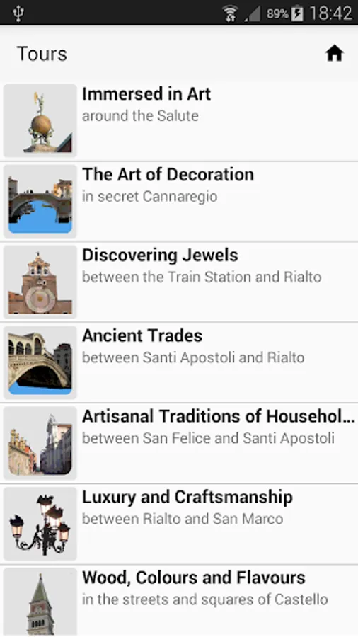 This app describes a number of tours in Venice, that combine tourism, history, arts and crafts.