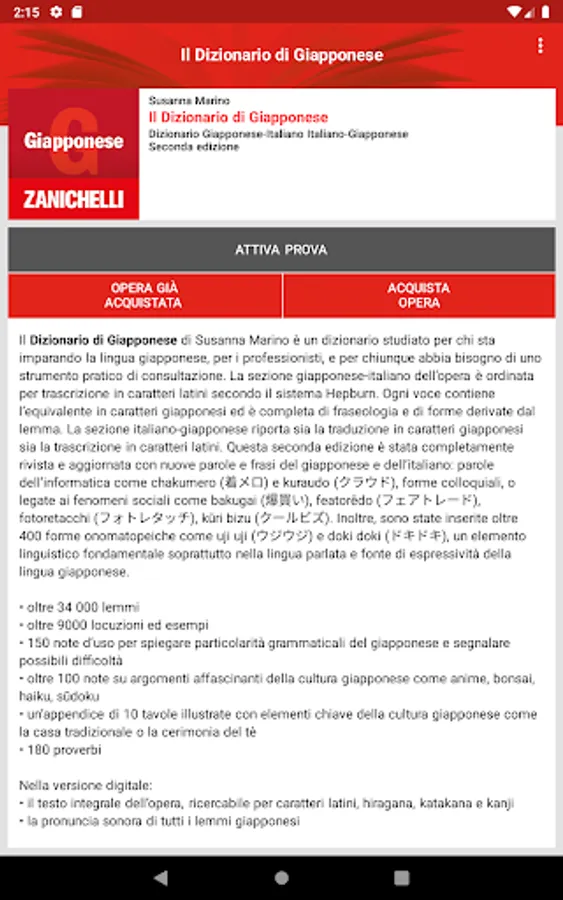 Activate a free trial, which allows you to perform 30 searches within the entire dictionary, or buy immediately in in-app mode.