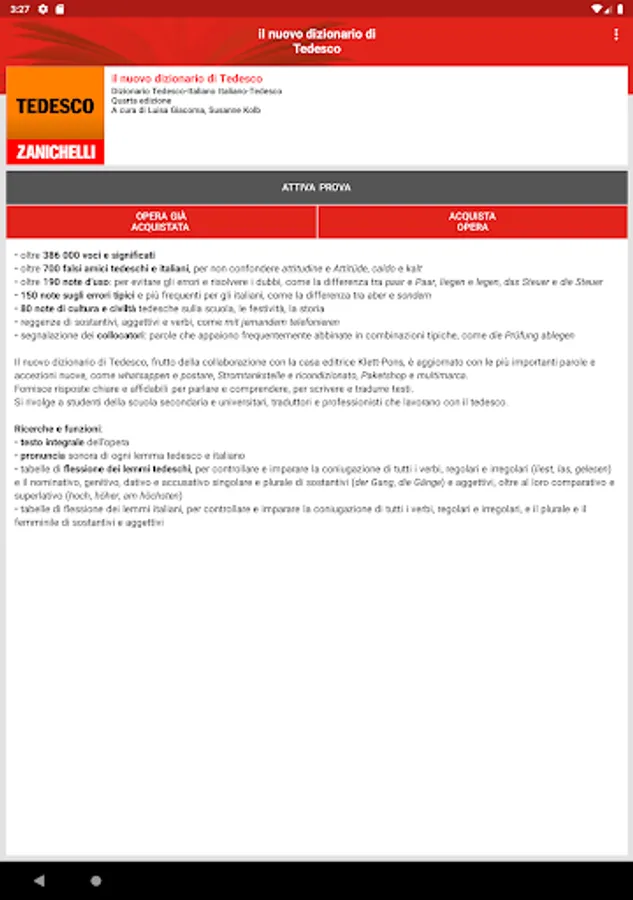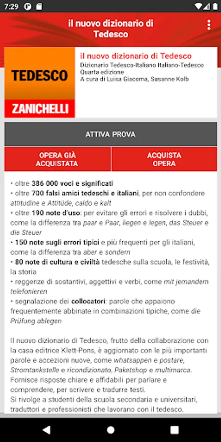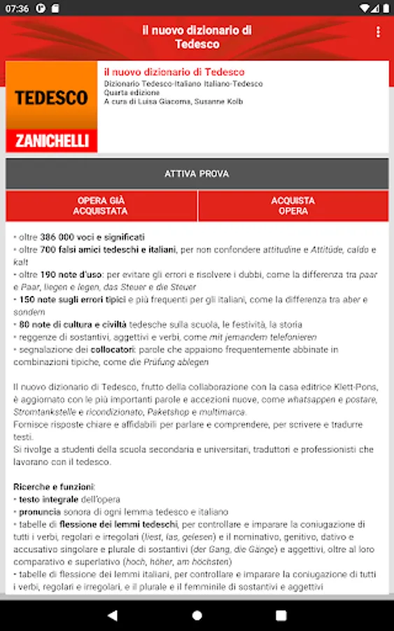 You can activate a free trial, which allows you to perform 30 searches within the entire dictionary, or you can buy immediately in in-app mode.