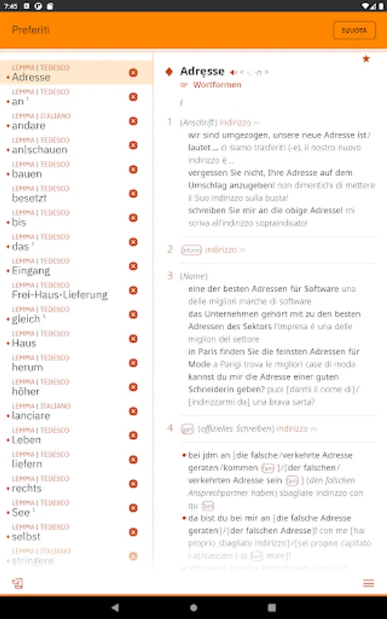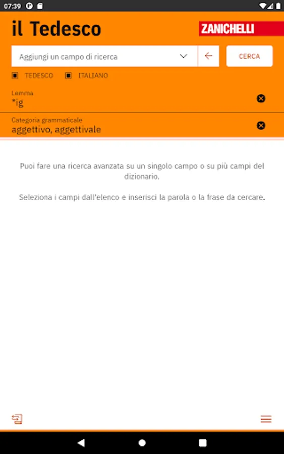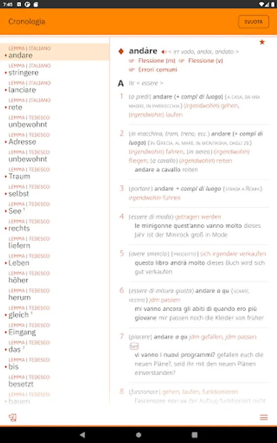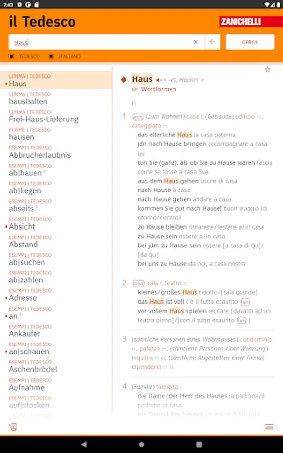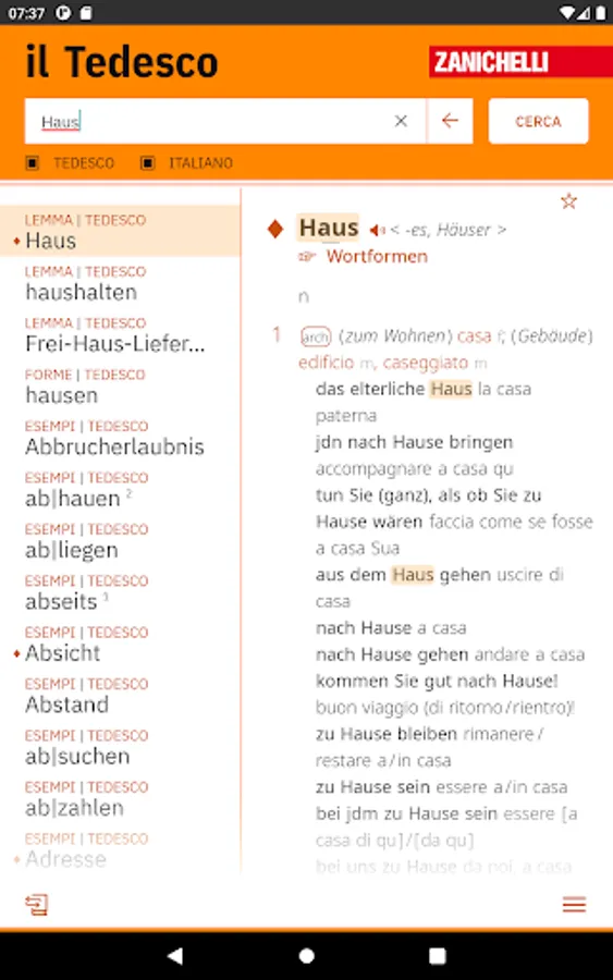 • Word of the day - every day you will receive a dictionary entry chosen by the Zanichelli editorial staff