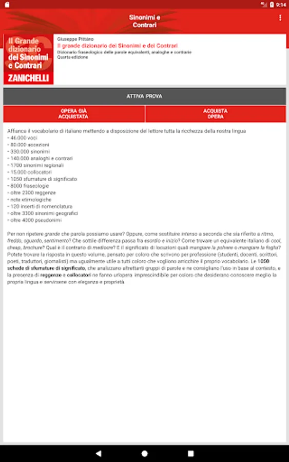 You can activate a free trial that allows you to make 30 to search the entire dictionary, or you can buy now in in-app mode.