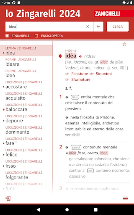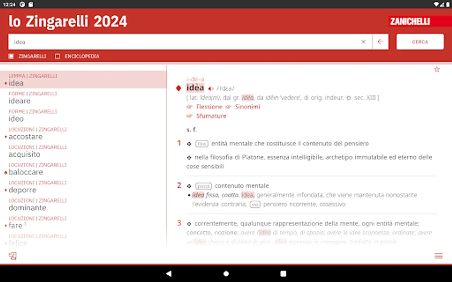 • the Zanichelli Encyclopedia, with over 70,000 entries, updated in March 2023