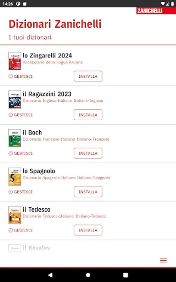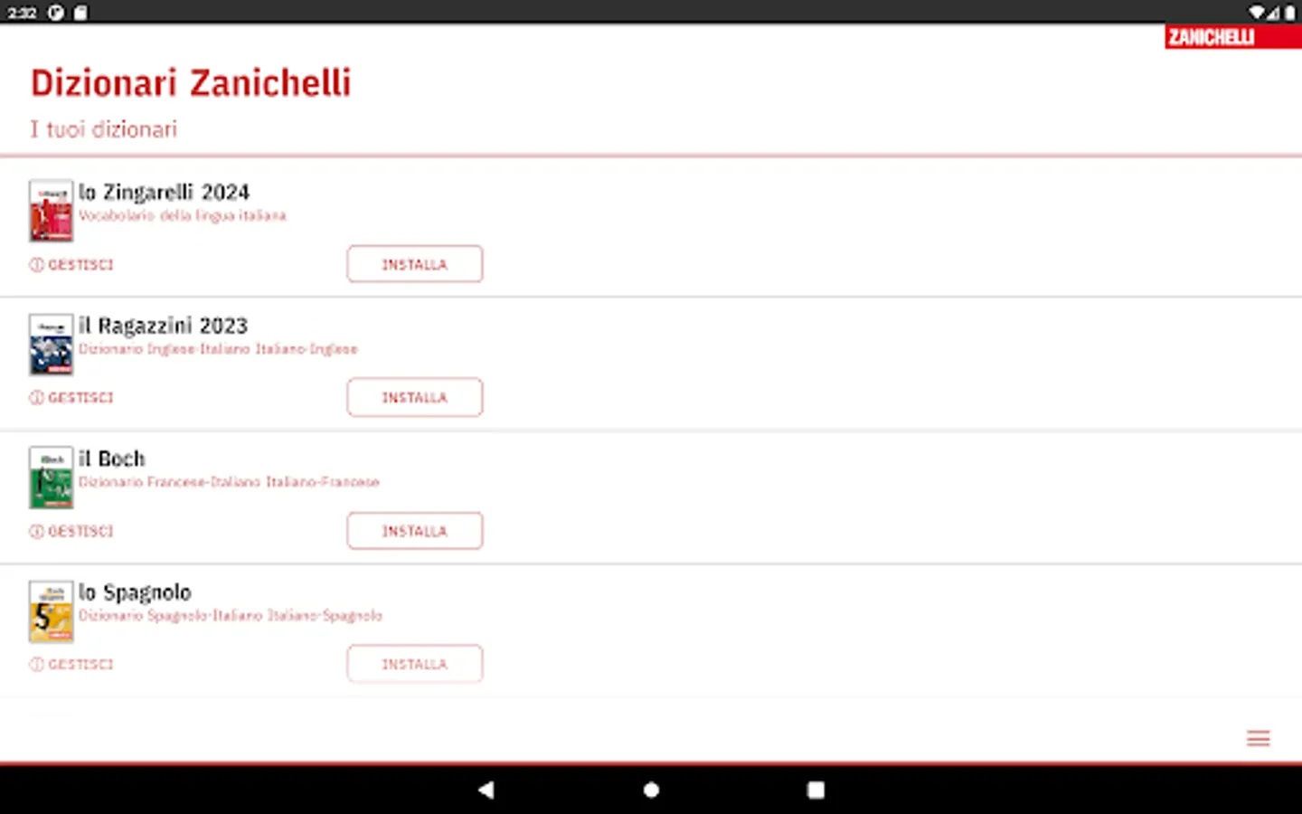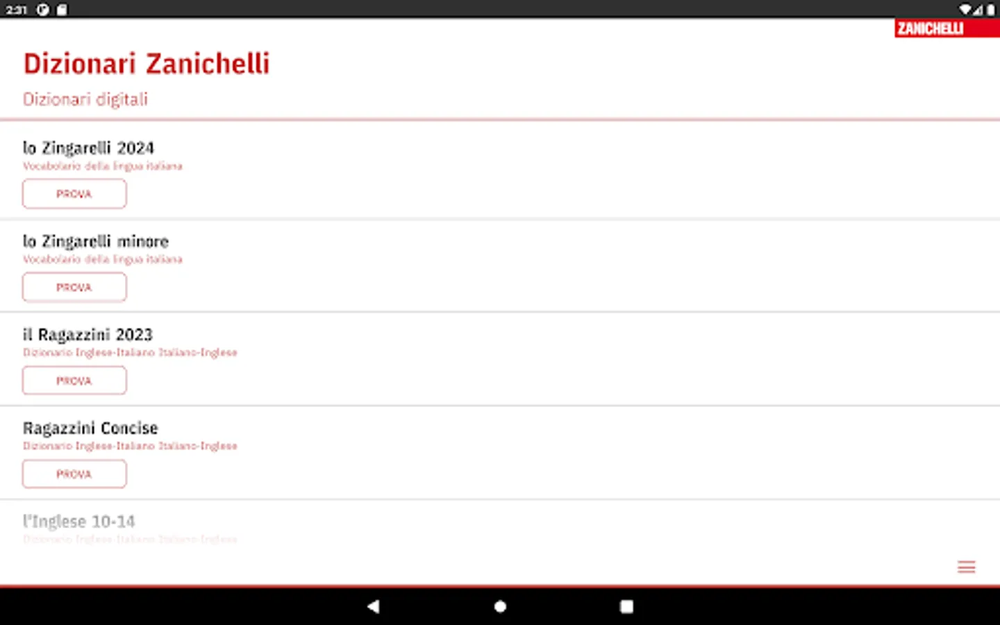 Zanichelli Dictionaries is the app that allows you to download and consult your dictionary on your Android smartphone or tablet.