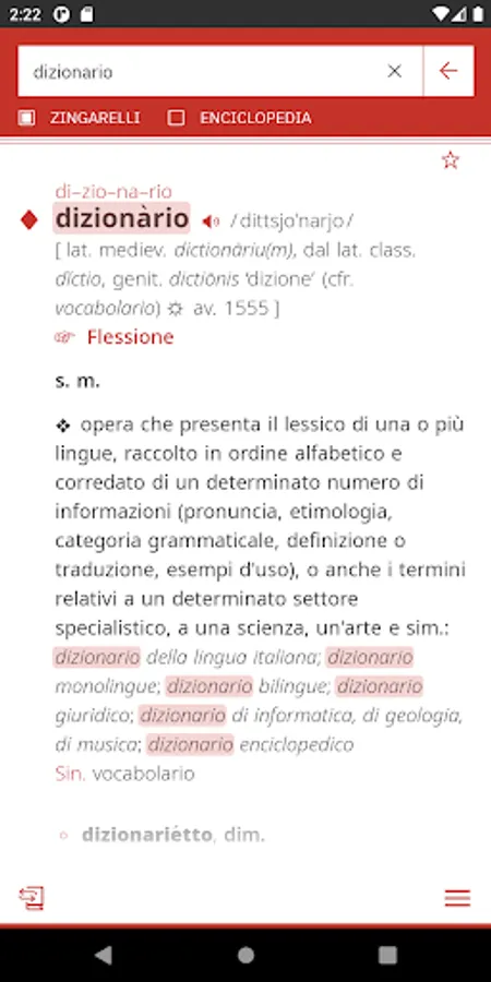 • Word of the day - every day you will receive an entry in the dictionary chosen by the Zanichelli editorial team