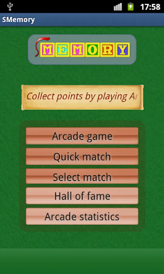 SMemory is a simple game inspired by the traditional memory game (Memory) in which the player must turn two cards and if they match, they disappear from the table, when there are no more cards on the table, the game ends and the player has won the game.