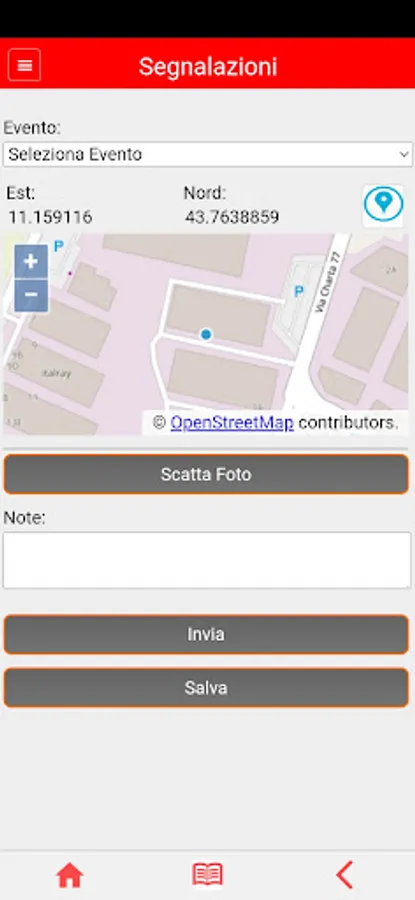 With this app, operators can connect to a ZeroGis installation and interact with the events of the operating room. They can both receive instructions to deal with the emergency (place and type of intervention to be carried out) and send data (their position, observations, notes and photos in real time).