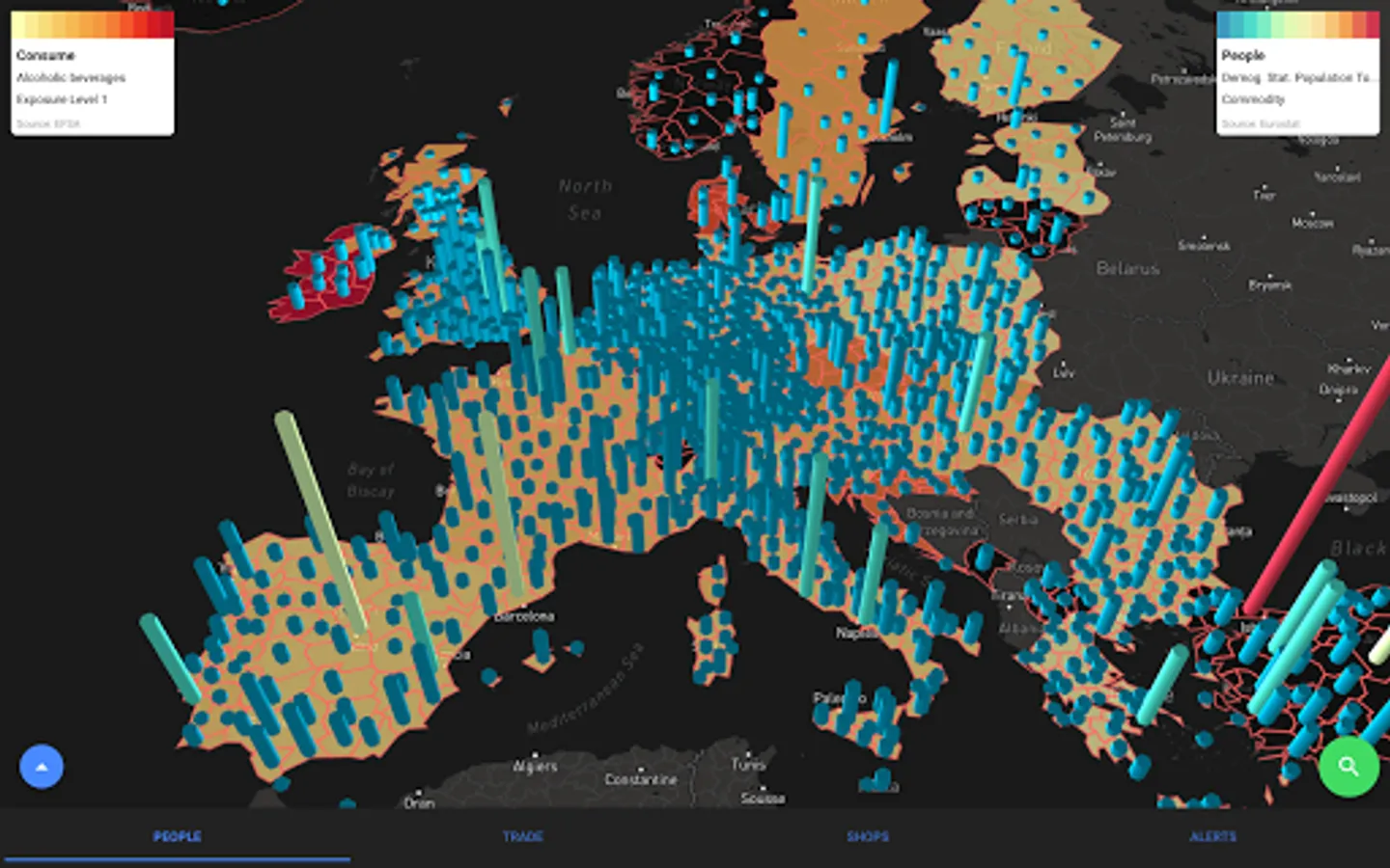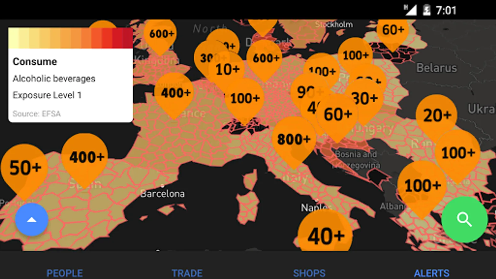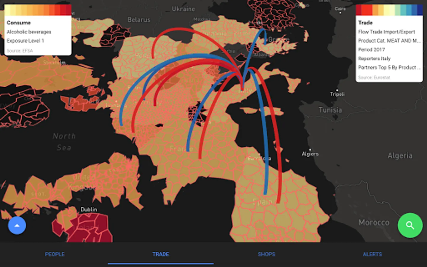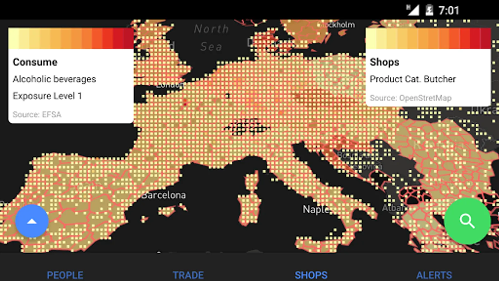 It gathers information from different sources: EFSA, Eurostat, OpenStreetMap and RASFF to render data about: