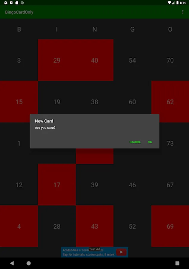 You can create a new Bingo card from the menu button.