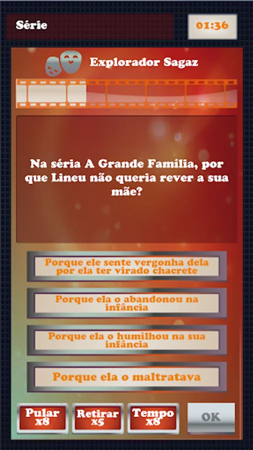 The quiz game, with options for answers in multiple choice, runs through the products of the Brazilian audiovisual field: novels, movies, TV shows, miniseries, series, documentaries, among others.