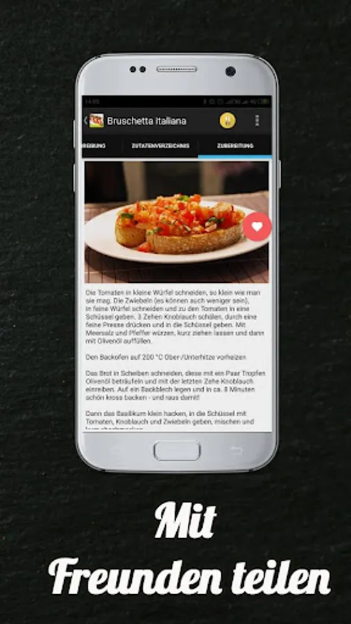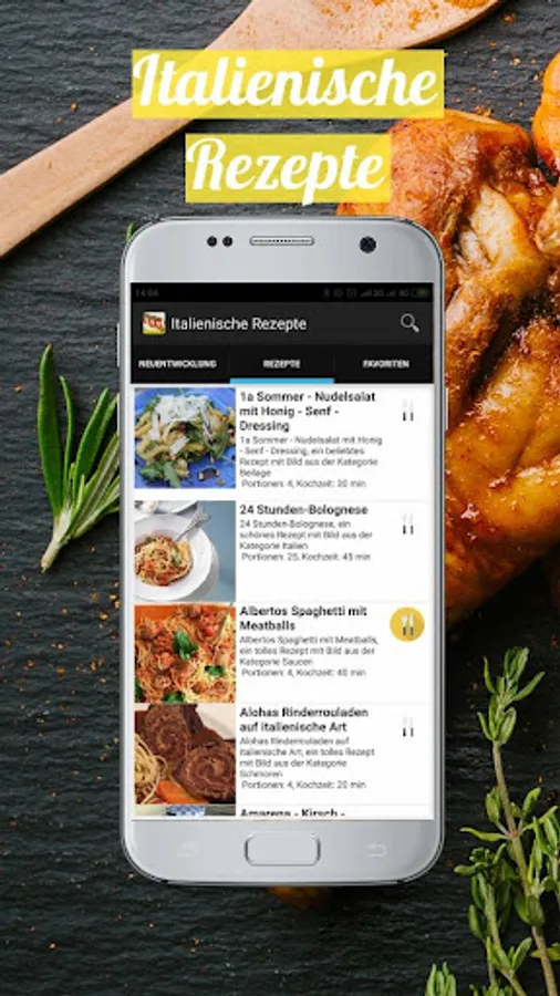 Ossobuco à la Milanese, simple ciabatta, carpaccio of bresaola with rocket salad, rigatoni al forno, spaghetti carbonara, sometimes without cream not only looks great, but also ensures the tasteful of any feast. But certainly does not mind, our Italian recipes just to make it all to themselves. Among other things, we have selected the best Vegetarian spinach and vegetable lasagna with tomato sauce, limoncello, bruschetta with green asparagus and tomatoes, Bolognese sauce, Bolognese alla Nonna. Carefully collected in this application Italian recipes for free and offline, we have selected only the best and tastiest dishes from around the world. We are constantly running new tests and testing them to only offer you proven cooking methods. Our app works without an Internet connection, so you can always access your favorite recipes.