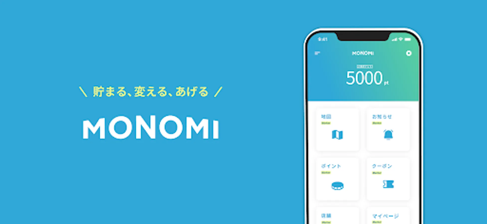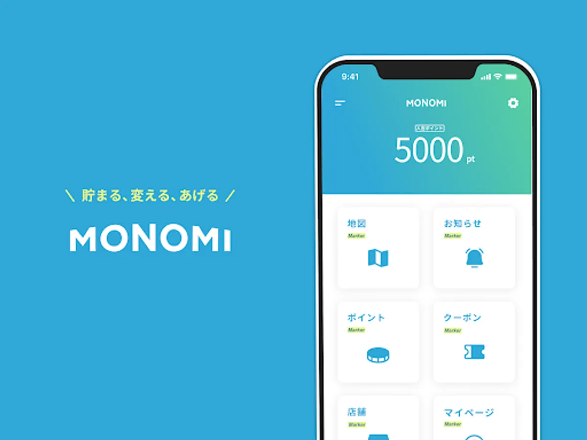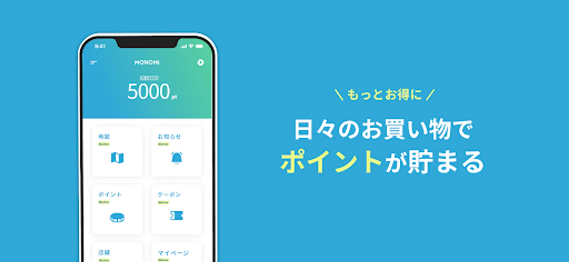 You can collect "MONOMI points" just by applying for points when paying for shopping, eating and drinking at registered stores.