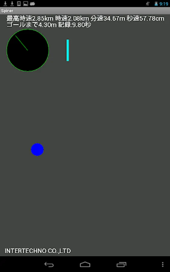 画面にタッチして、指でこすれば指の移動速度が表示されます。