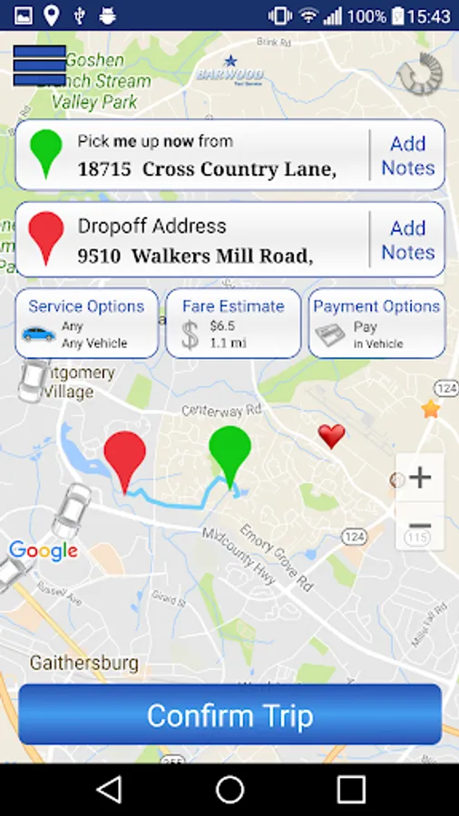 • Watch how Barwood Taxi assigns a nearby driver. Follow him on the map