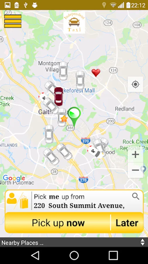 2) Request a car to your GPS location or a nearby address