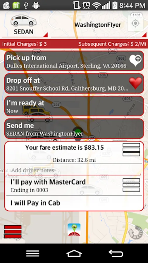 2) Request a car to your GPS location or a nearby address