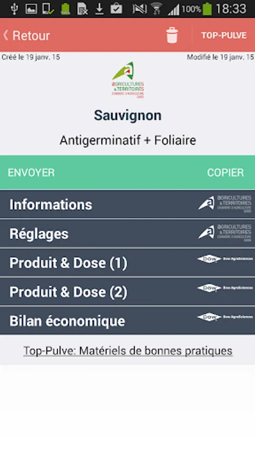 Application designed by experts in viticulture weeding: Gard Chamber of Agriculture, MSA, Dow Agro Sciences, Lechler and bayer