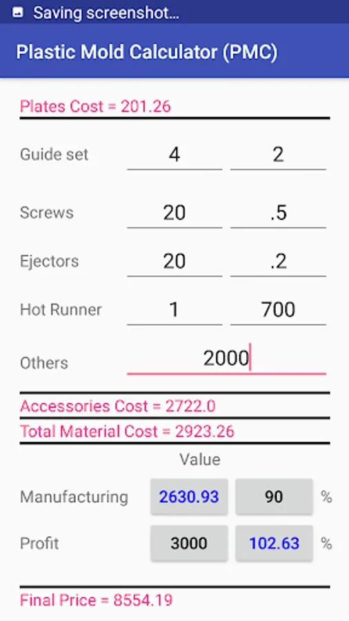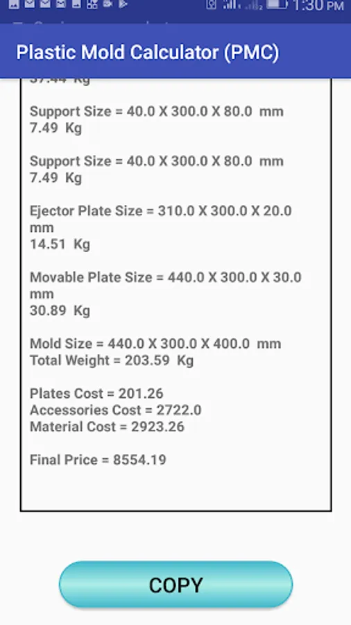 PMC is the best app to calculate the mold cost and the easy app to calculate the final mold price.