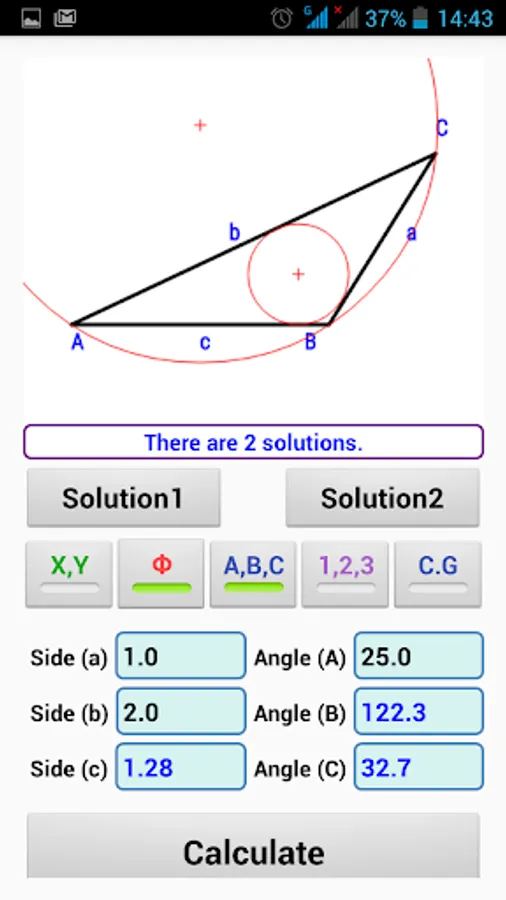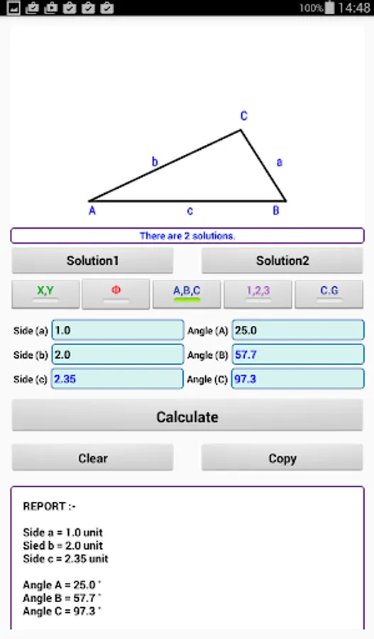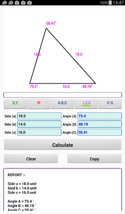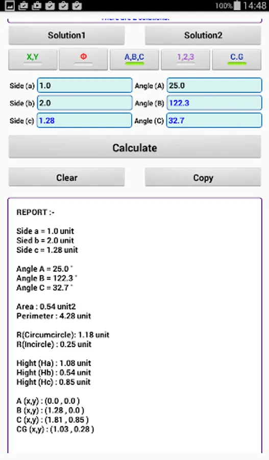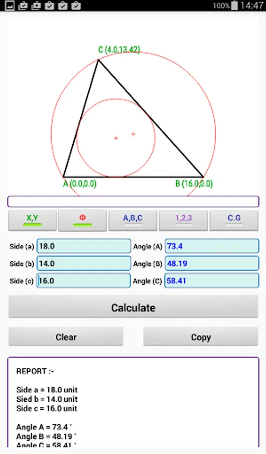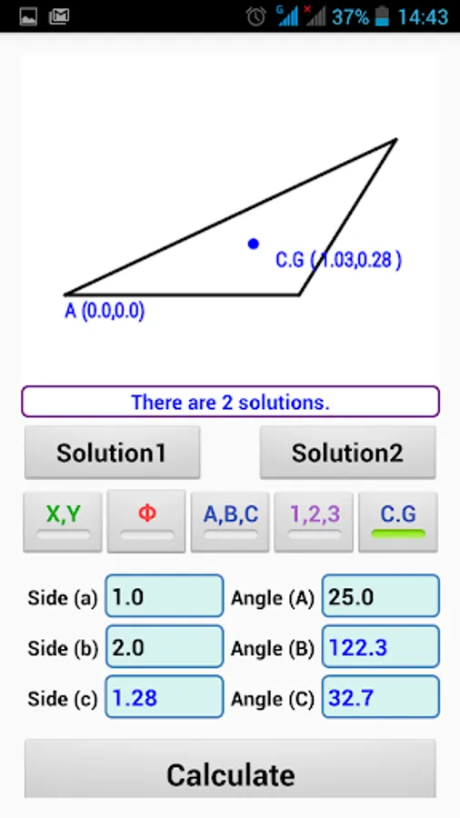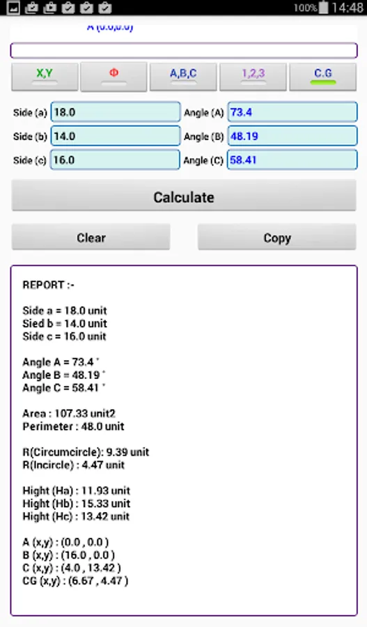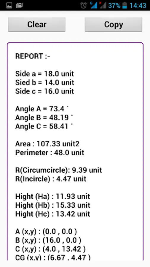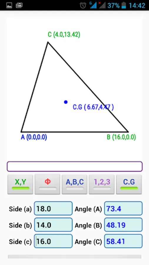 -Get the center of gravity ( C.G ) of the triangle and show it in the drawing.