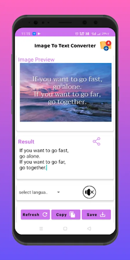 'Image to text converter' is a best image translator and image to text converter. This is a best FREE text scanner & converter application that scan your text that can later can be send via email or share on social media or you can copy that text in clipboard and later can be used in any other app. This app is suitable for everyone, such as students, businessmen, journalists, etc.