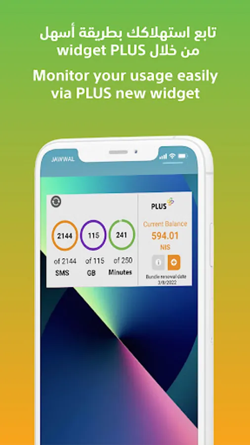 "PLUS" the first telecom digital program in Palestine. The new Unique Innovative Experience! Now for all Jawwal prepaid subscribers, you can easily build your own plan, and choose the value of 3G, minutes and messages bundles as it suits you and according to your needs; through "Plus" application, and the value of the chosen package will be deducted from the main balance. Download the application now to enjoy this new experience.