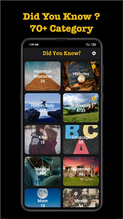 Did you know? the mobile application that provides you information about amazing facts. Did you know fact app have more than 70+Diffrent category Ex History,Geography,Science, Technology, etc