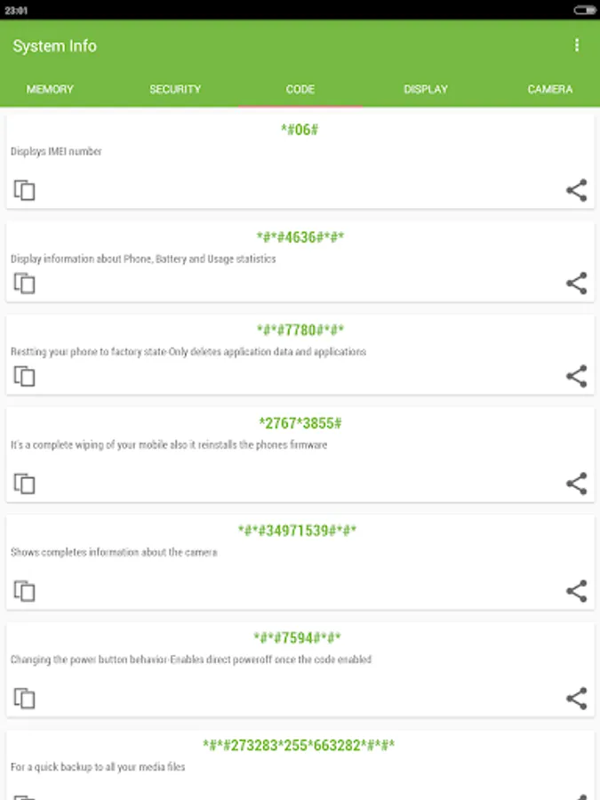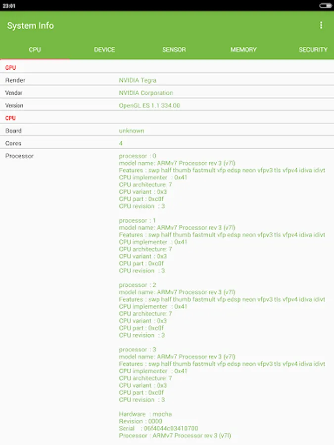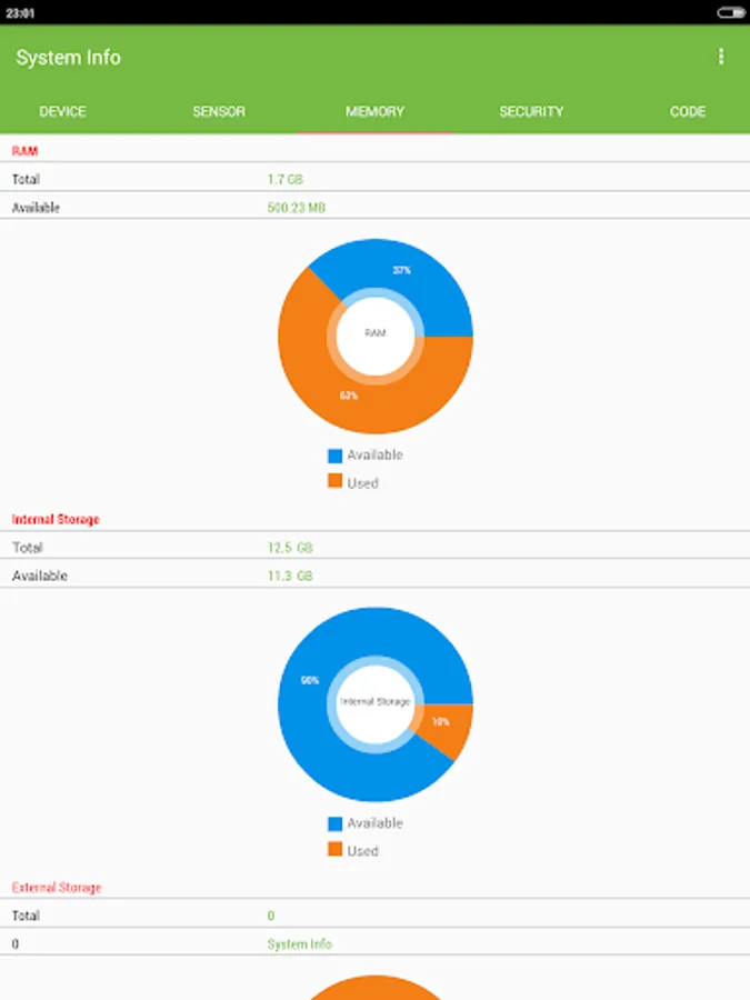 System info gives you your hardware and software information like CPU,GPU, android mobile os version and also provides your device memory info and display info.