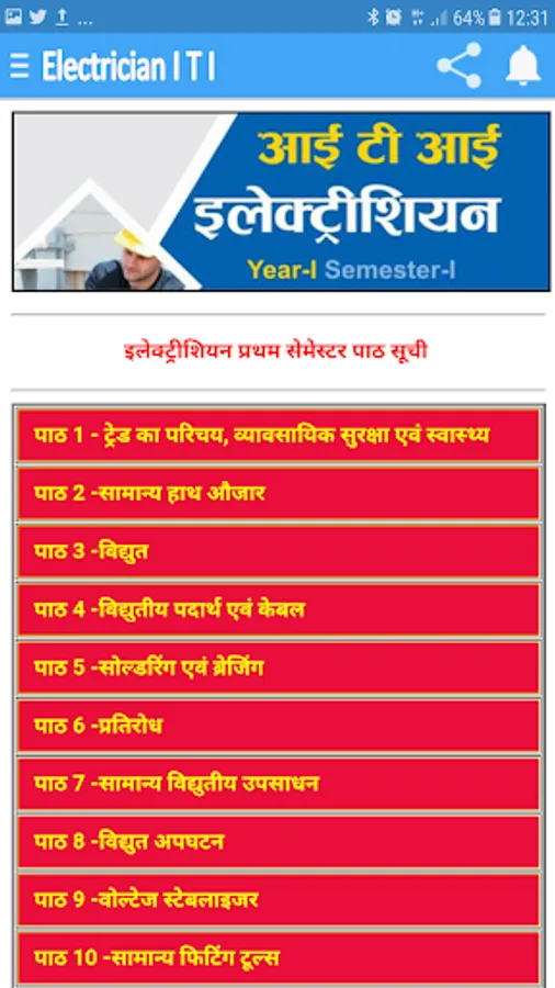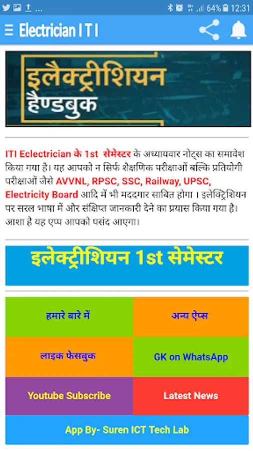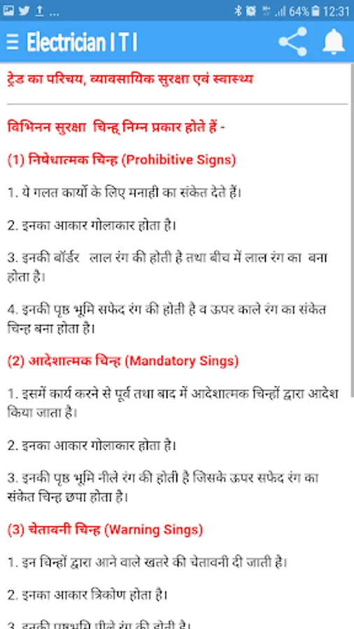 Electrician 1st Year Theory Handbook in Hindi Mobile App is useful for all electrical exams.
